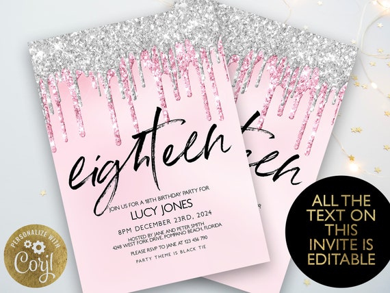 Editable 18th Birthday Party Invitation 18th Invite Pink Etsy