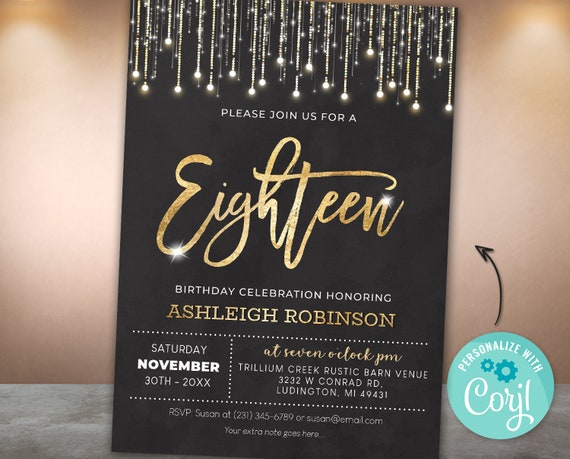 18th Birthday Invitation Eighteenth Birthday Party Elegant Etsy